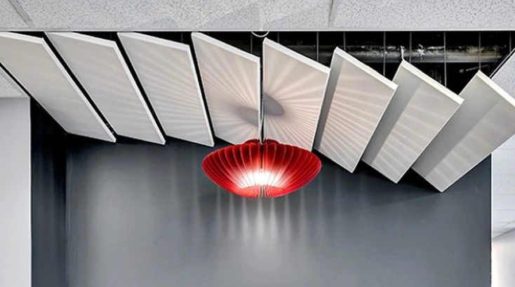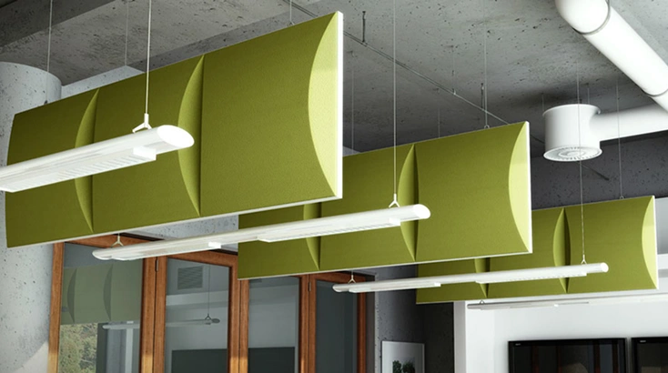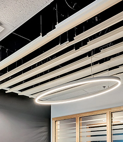 Good acoustics shape how you feel in a space. Suspended baffles and ceiling clouds help reduce noise, manage reverberation, and improve overall sound quality.