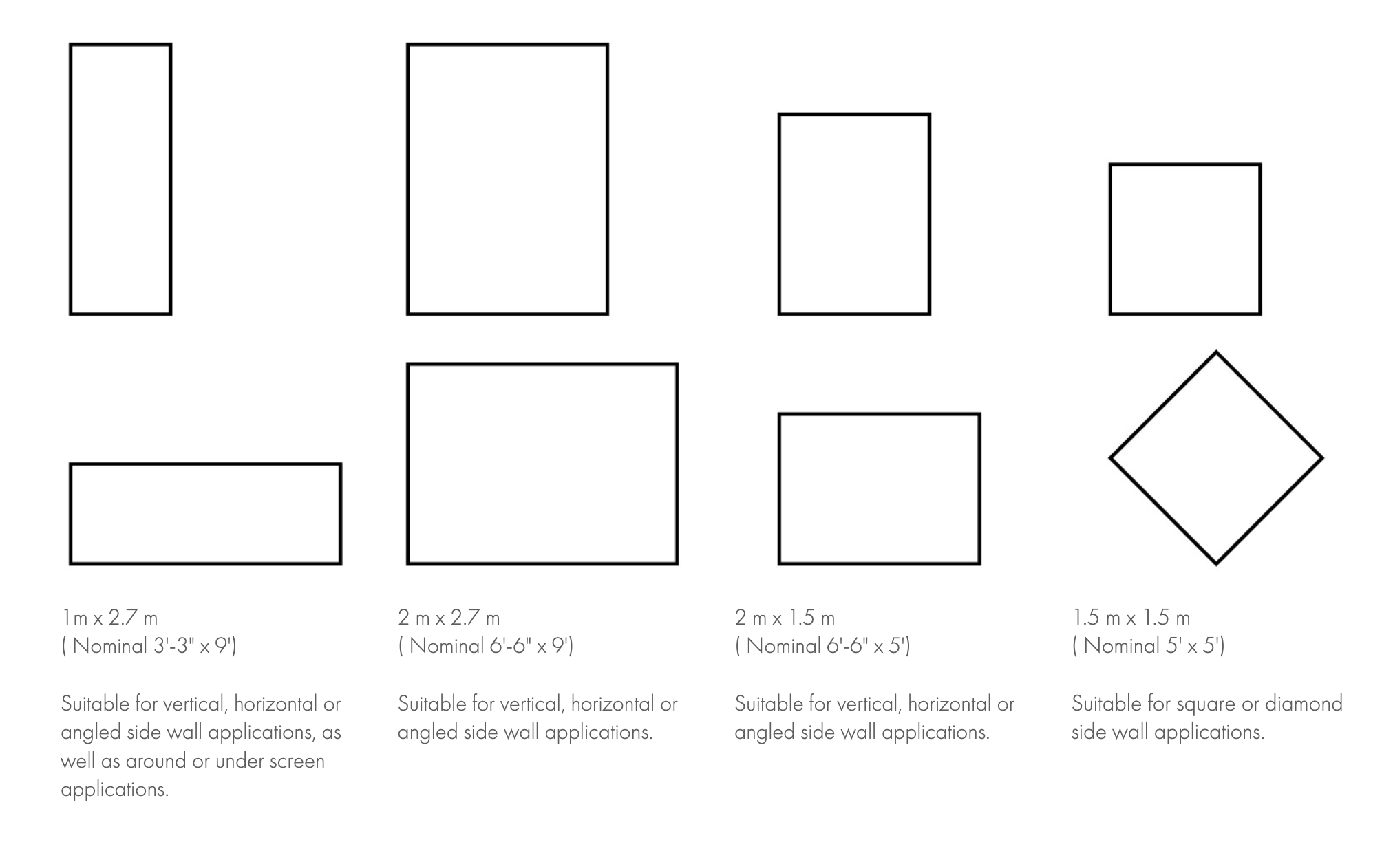 in-VISIBLE™ can be mounted directly to walls, floors or can be provided as a stand-alone display unit. in-VISIBLE™ comes in four standard sizes - available in vertical, horizontal or custom layouts. Custom sizes, layouts and applications are available upon review and approval. The depth of the frame is 75 mm (nominal 3").